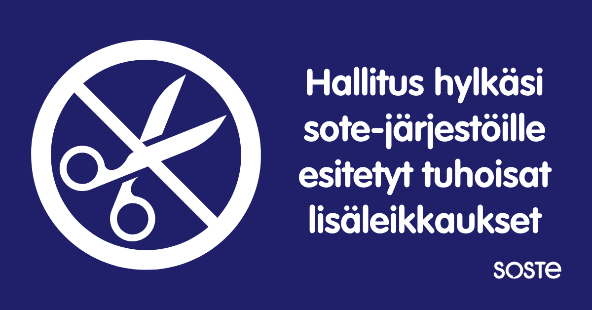 SOSTE: Hallitus hylkäsi sote-järjestöille esitetyt tuhoisat lisäleikkaukset